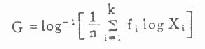 算术均数 公式(4.6) χ=(1/n)∑X 公式(4.7) χ=C+(1/n)(Xi-C) 公式(4.8) χa=Xa-1+(1/n)(Xa-Xa-1) 公式(4.9) χ=(1/n)∑fX 几何均数 公式(4.10)