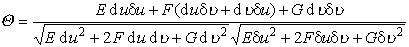 FG为曲面的第一基本量(在点M取值)。坐标线u=常数和v=常数的交角决定于