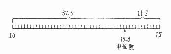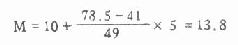 用符号表示见式(4.3)。 若将频数自下而上累计到略小于n/2为止,则得A2=67。也得出中位数在10-15组段内。