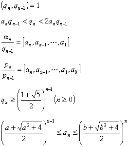 1° 渐近分数的等式与不等式
